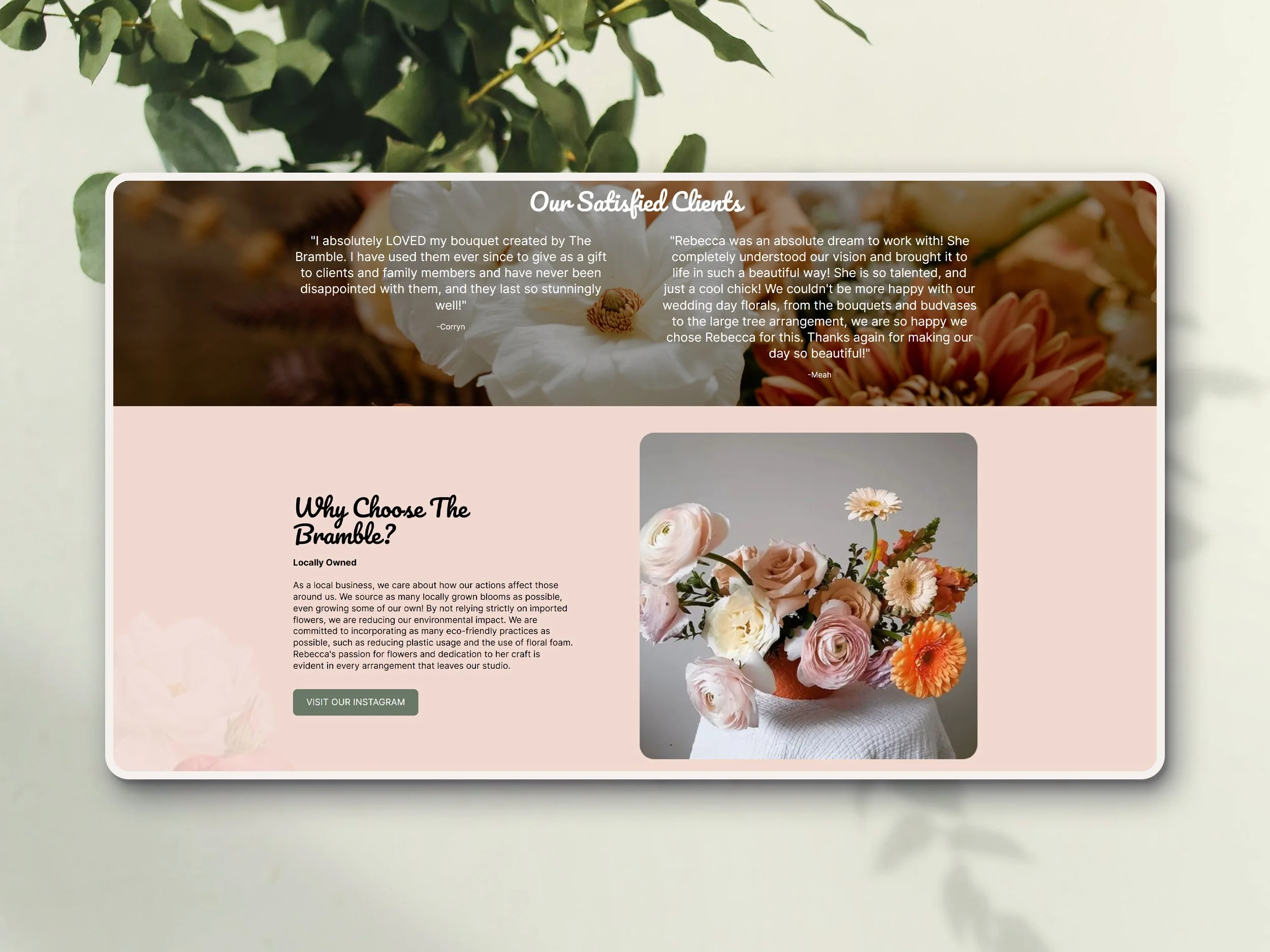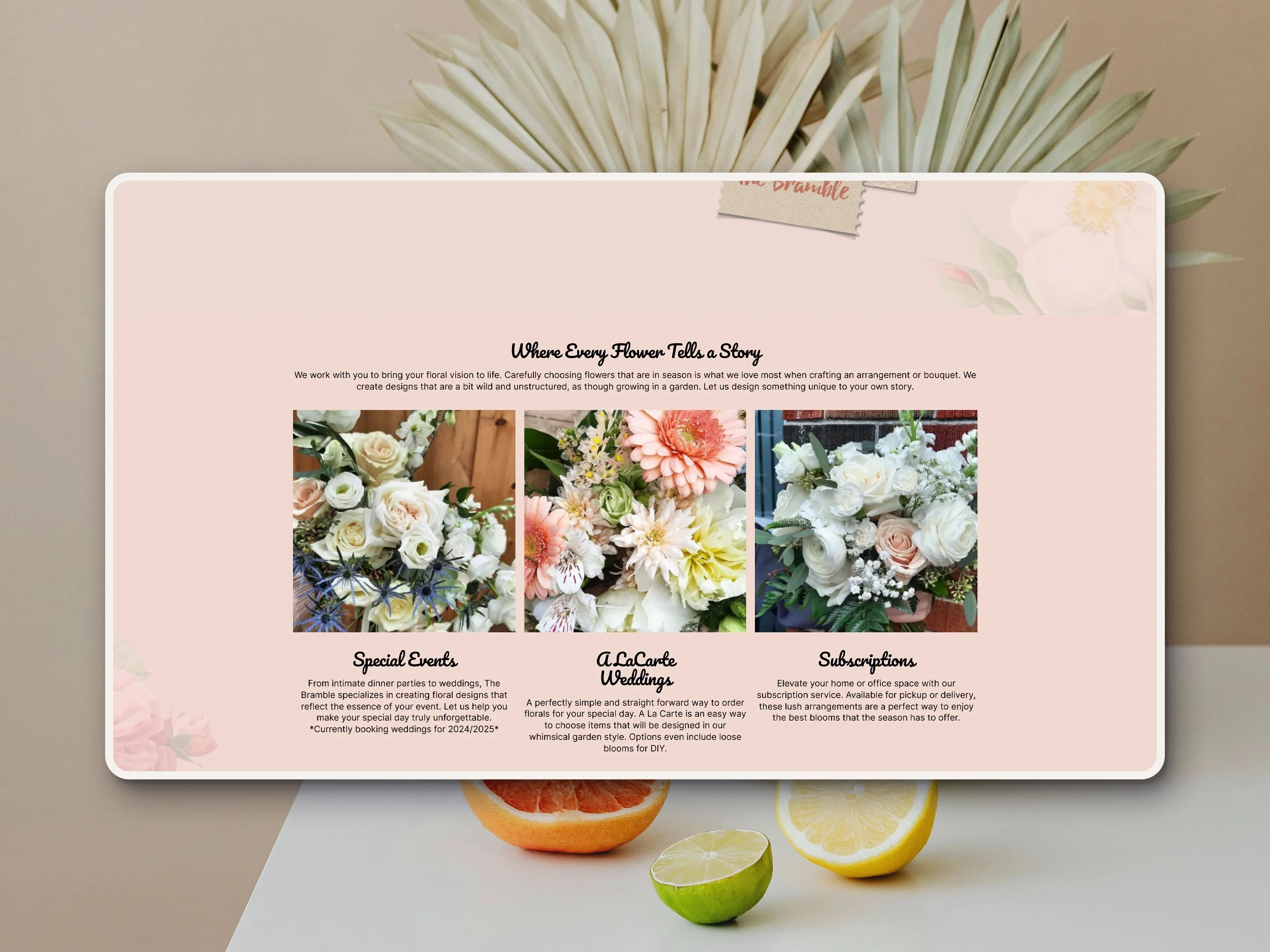Bramble needed a digital storefront as beautiful as their floral arrangements. We designed a soft, romantic Squarespace site that highlights their handcrafted bouquets while making it easy for customers to browse, shop, and send flowers with just a few clicks.