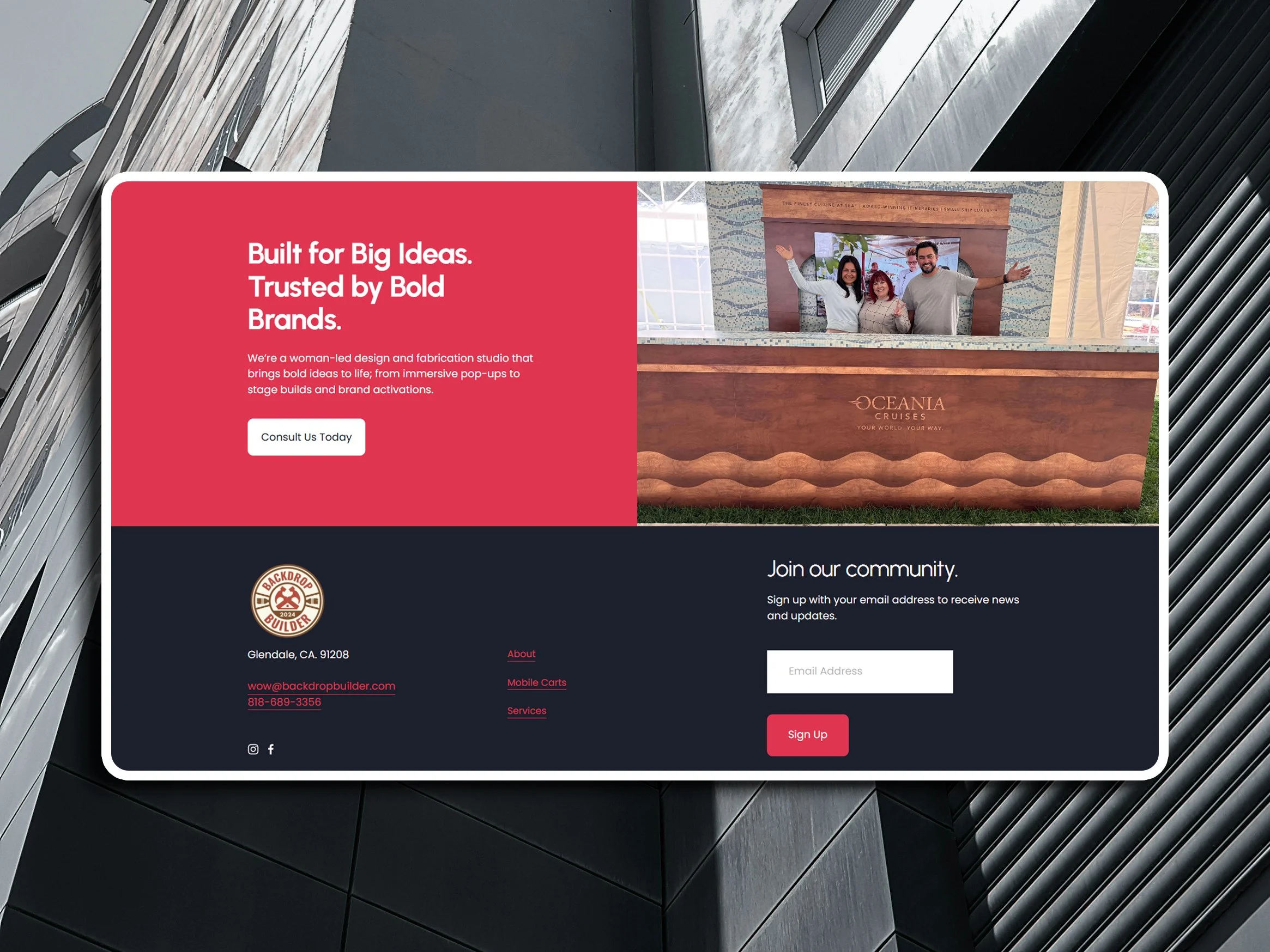 Backdrop Builder partnered with our team to transform their online presence into a high-performing, conversion-focused platform. We designed and developed a fully responsive custom site that highlights their nationwide custom fabrication services while showcasing their impressive client roster.