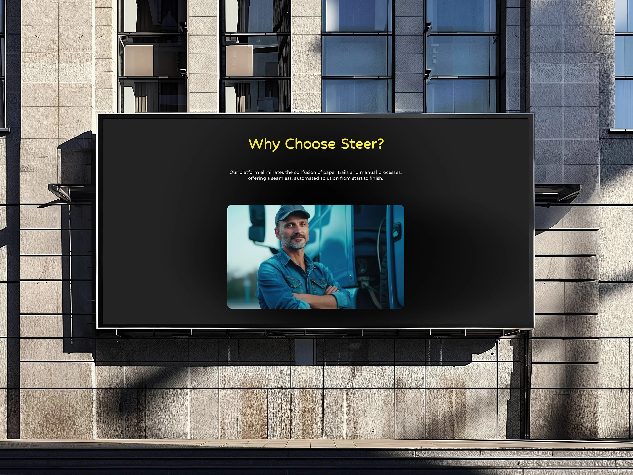 From custom UI design inspired by the sleek aesthetics of modern freight vehicles to seamless mobile responsiveness, every element was tailored to captivate logistics professionals and fleet operators alike. The result? A visually striking and user-friendly platform that accelerates lead conversion and reinforces Steer’s status as an innovator in transportation tech.